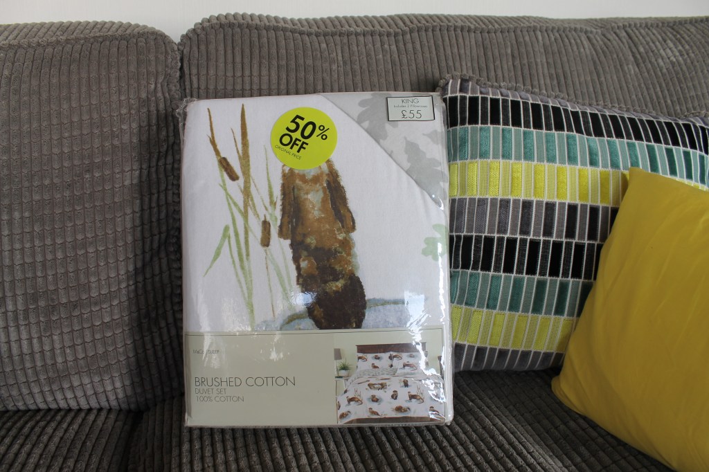Good morning dear readers! How are you doing? This morning I woke up at 8.30am after a great night’s sleep. Last night I went to bed at 10.30am (earlier than usual) and I’ve read for half an hour before sleeping, I think that helped. Yesterday we bought a king size duvet (even if the bed is a double) and that was also the reason I slept so well, the double size duvet was too small, so I was always waking up because of the cold in the middle of the night. I also bought a lovely and funny brushed cotton duvet set (I think cotton is not warm enough for Scotland) with otters on it. I have always loved otters, I find them so sweet and adorable, swimming with their tummies up and holding hands… Only thinking about them warms my heart! I love Mackays duvet sets, they really are original and beautiful. We’ve got many at home, with deers, too…It was 50% off the original price so that convinced me even more.