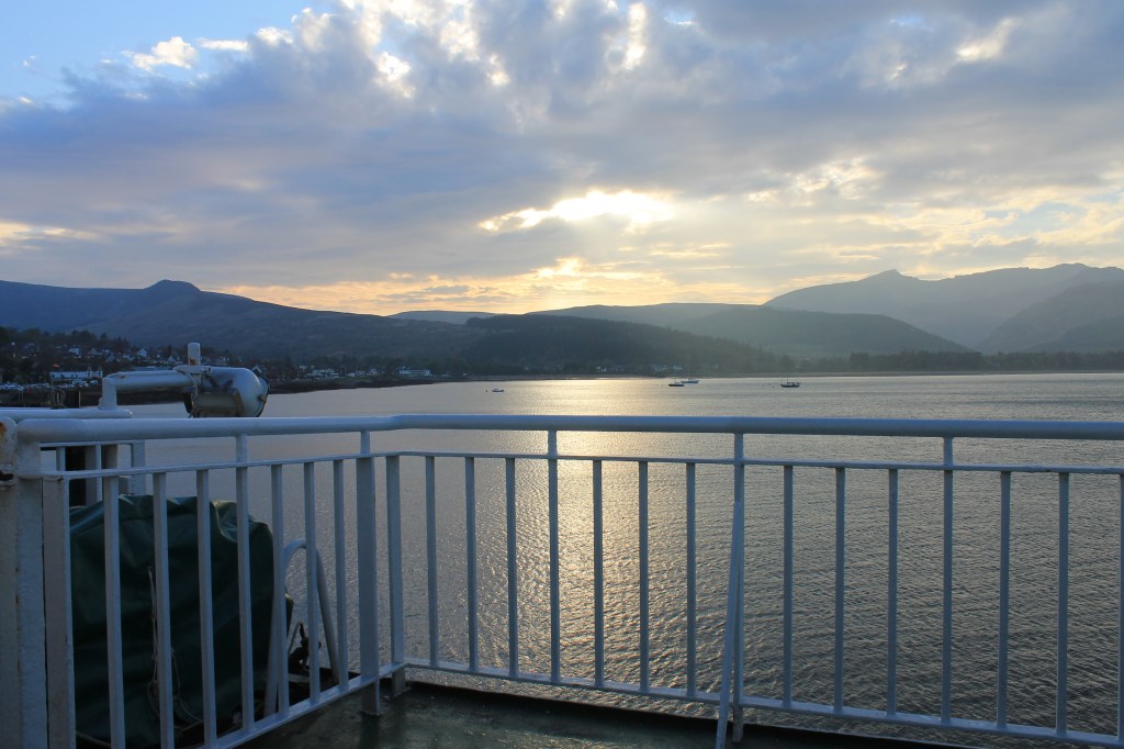 We took the last ferry from Arran to Ardrossan just in time! On the ferry we stayed out on the deck to look at the beautiful view but after 15 minutes we went back inside at the bar to have a tea because it was cold and windy (the waitress gave us some cakes for free, it was the last journey of the day and otherwise they’d have to throw them away!).
