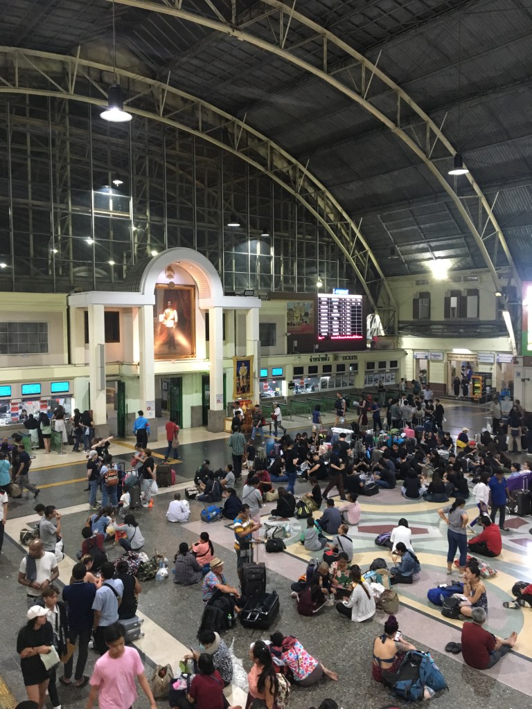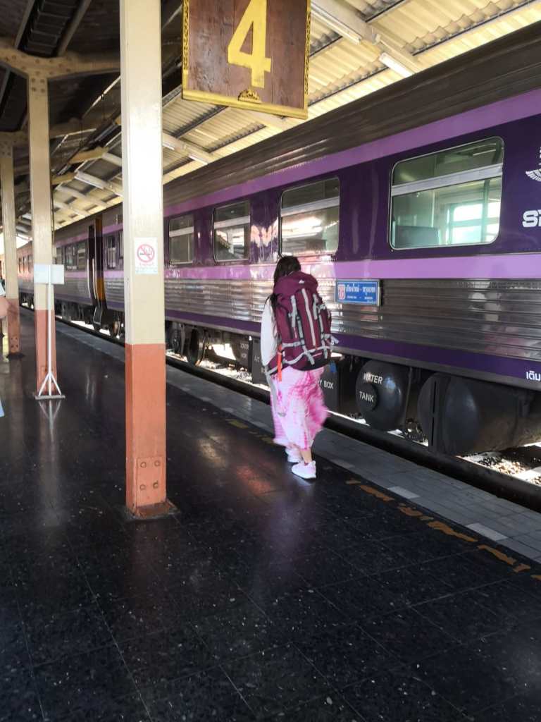 We had curtains for privacy, space for our big backpacks and a small lightbulb inside our berths so that I could read. I only slept from 10pm to 4.30am because of the jet lag, but I had a great book with me so I read that while waiting for our breakfast because, yes!, a lady came to get our orders for breakfast shortly after leaving Hua Lamphong station. At 7am it was funny because she arrived yelling and waking up everyone by opening their curtains or knocking… What an adventure, I was super excited, really. Closing the curtains and having your privacy, it felt like being in that tents that we were making up at home, as a child, with blankets and pillows…! So fun!