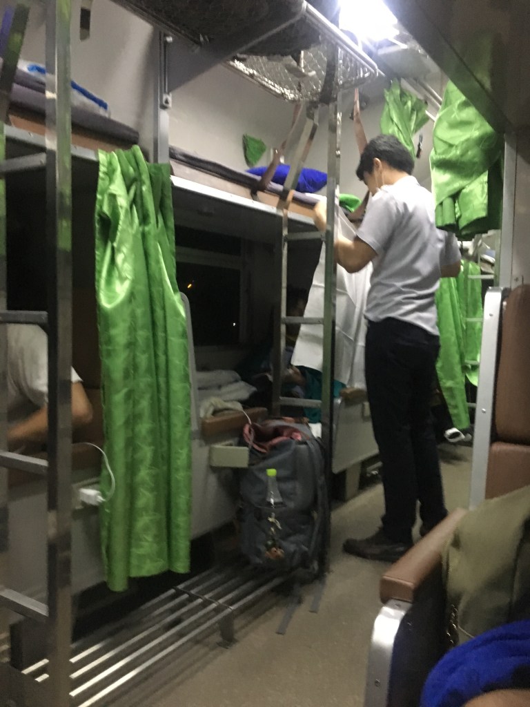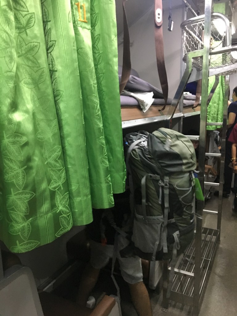 The train ticket was more or less £28 (33 euro) pp, for a berth in second class with A/C. I had bought the tickets online, on 12 Go Asia. I wanted to try first class because it was so cheap and we would have had a private cabin with a sink as well, but it was full, so never mind, we had an even more authentic experience and the place was clean and comfortable.