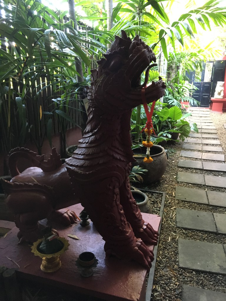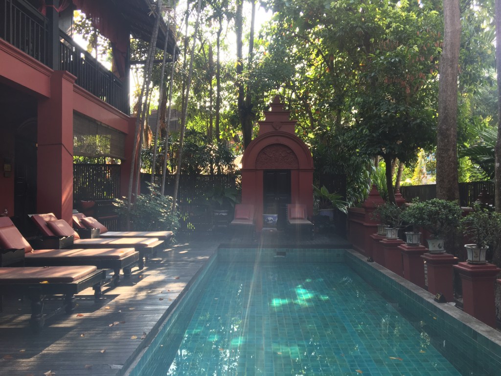 Once arrived in Chiang Mai we found a lot of red pickups waiting for backpackers arriving with the night train, they were extremely cheap and everybody could talk to the driver first, see which direction they were going. We were going to Tri Yaan Na Ros (recommended by the Lonely Planet guide) an authentic, Lanna style colonial house for just £32 (37 euro) a night. Beautiful interiors and a huge bricked-up bath tub. The surroundings were lovely, too, we had a primary school near and I could spend hours looking at the squirrels running on the trees. Can you imagine switching from noisy, crowded, super hot Bangkok to this heaven with birds singing in the day, toads singing in the night and squirrels? This was definitely our kind of place. And it was also a stone’s throw from the centre and the walled old town.