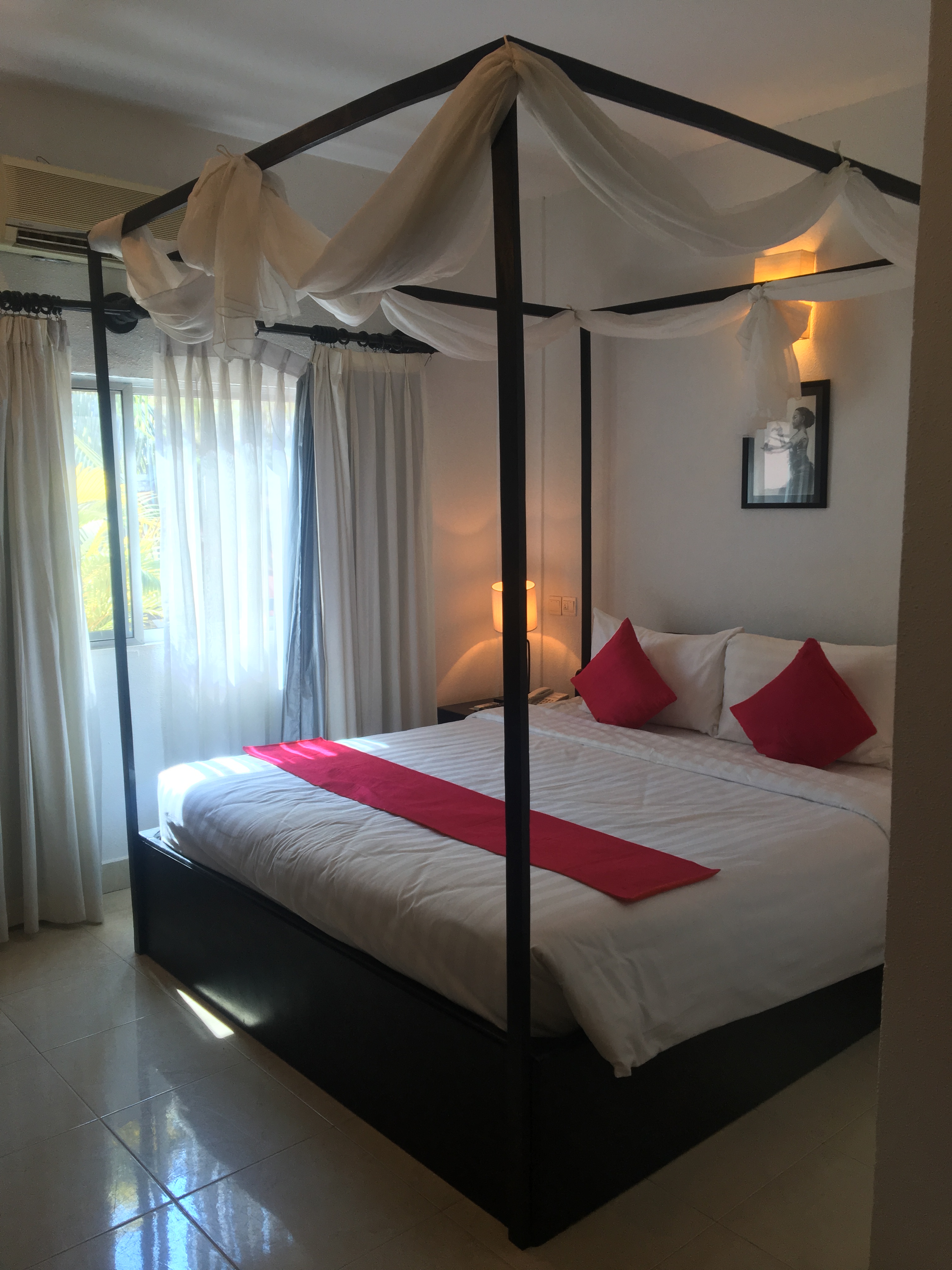 Once we’ve finished the various queues and we got our backpacks, we found a kind tuktuk driver from the hotel waiting for us. A tuk tuk transfer airport-hotel (20 mins) was included in the hotel price (great bonus!), many hotels in Siem Reap do this, so if you’re planning a trip choose one which has this service. When we arrived at our hotel (the Cyclo D’Angkor Boutique Hotel, beautiful and cheap) we were so relieved, because of the stress, the heat and the tiredness. The staff was extremely kind, they gave us a welcome drink and explained everything about the hotel and the surroundings, the small tour or the grand tour (of the temples), the sunrise or sunset visit (same). Luckily our room was ready in advance.