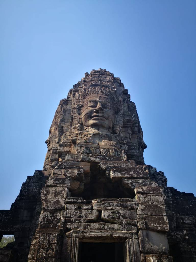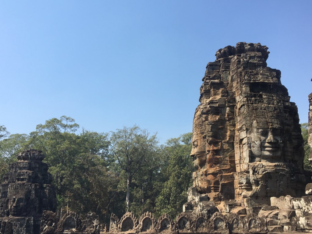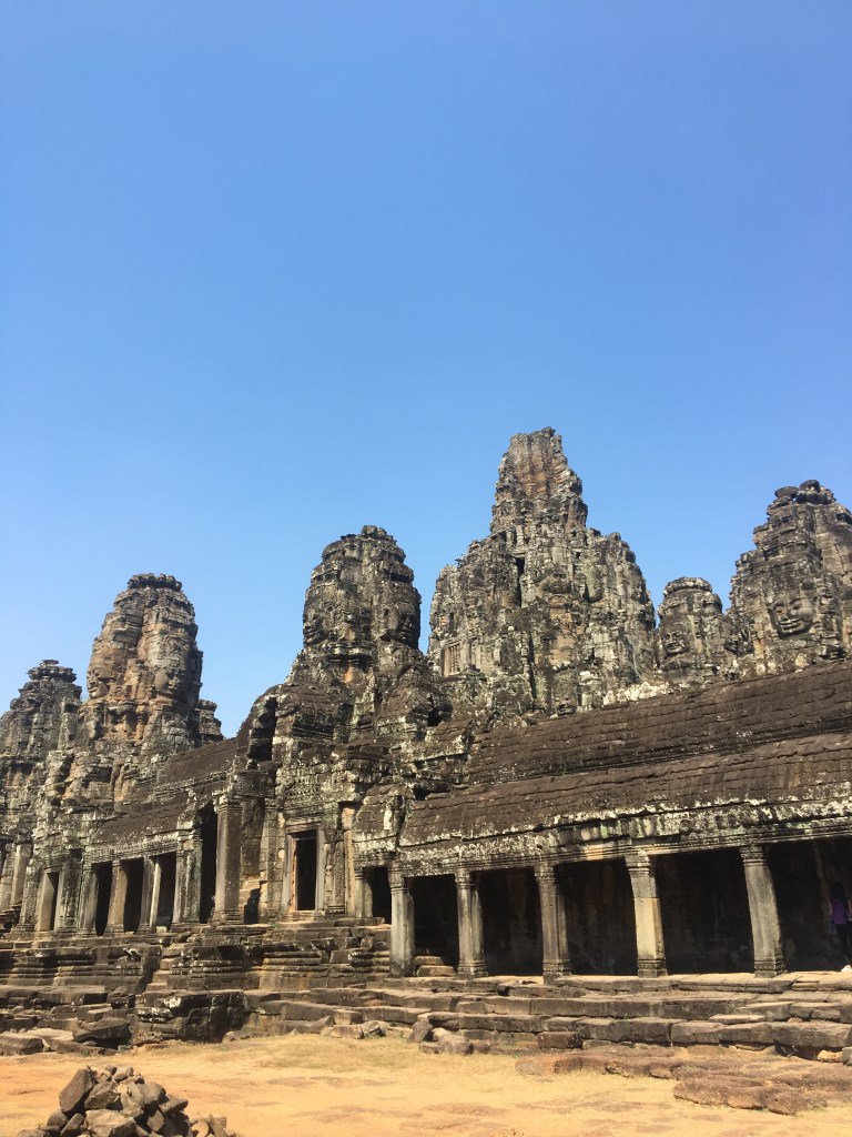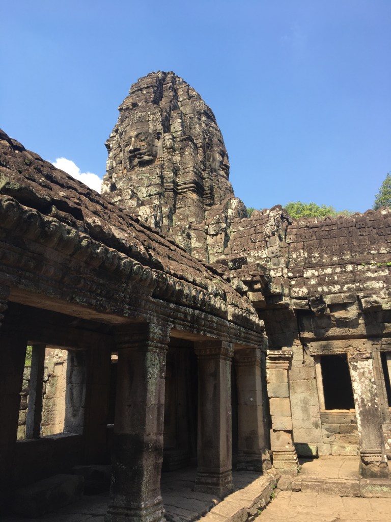 Our first stop was at Angkor Wat (which means “capital of temples” and is located 5.5km from Siem Reap), unfortunately it was already too late and it was packed with huge groups of tourists and buses from the organised visits. As a matter of fact we stayed shortly because we would return for the sunrise. This is the most famous temple in Angkor, a classic example of Khmer architecture. We soon went to the Bayon, which is not far from there. Before visiting I was super confused because I really couldn’t understand which was the best time to visit it, by reading the Lonely Planet and on the internet. Sunrise and sunset are definitely not-to-miss (as a matter of fact we’ve seen both and it was breathtaking) but they are crowded. They say that the best time is slightly after the sunrise, when the groups go back to their hotels to have breakfast, and that’s what we’ve done. Instead of going back to the hotel to eat we remained there, hungry but happy. And we managed to go on the top of the temple (the stairs were so steep!), which we couldn’t do on the first day at 10.30am.