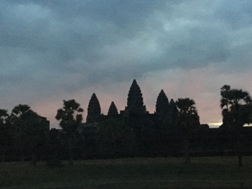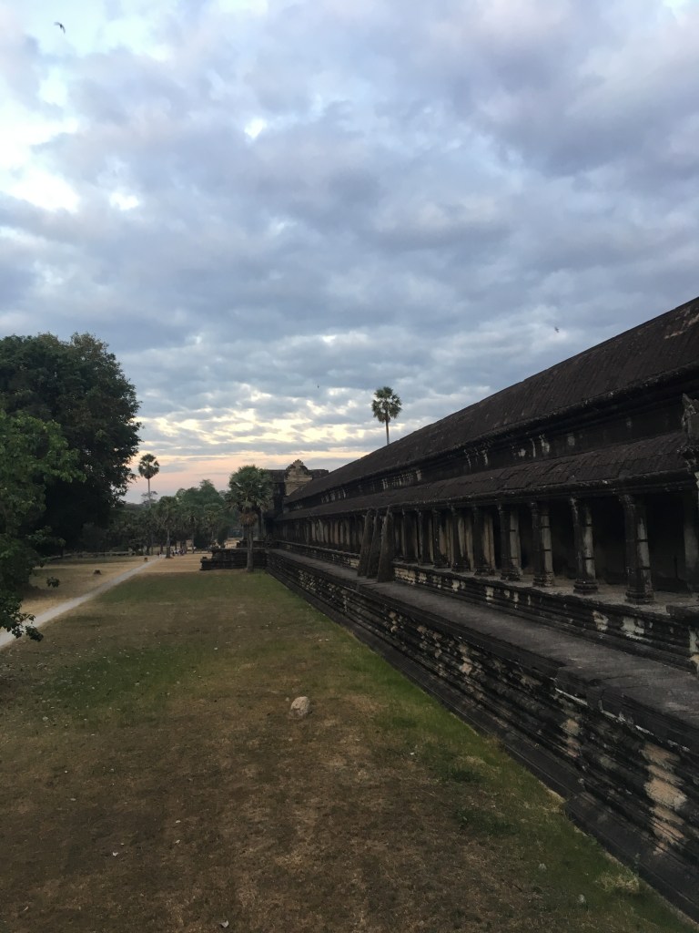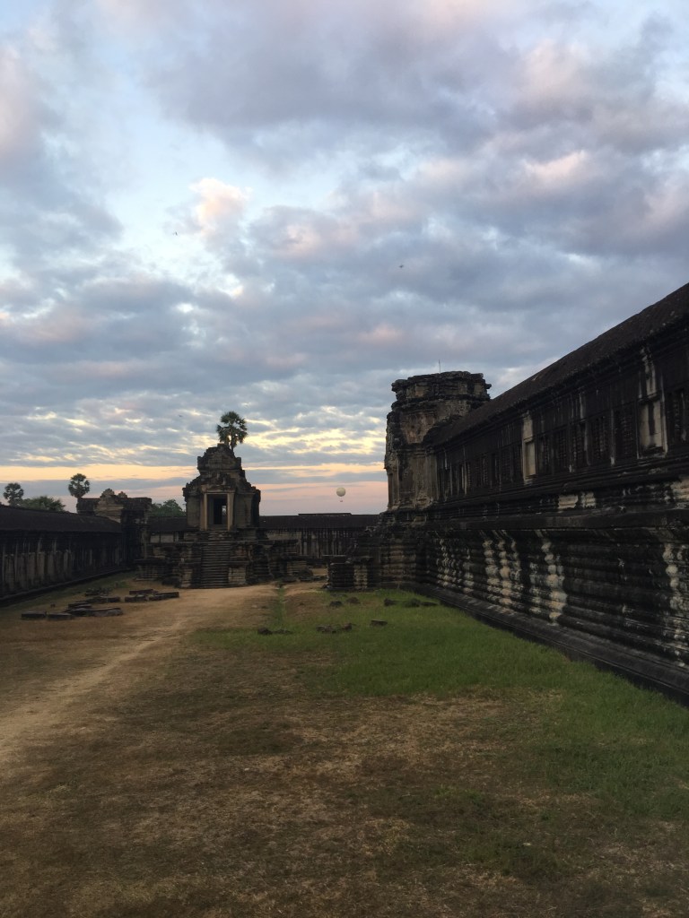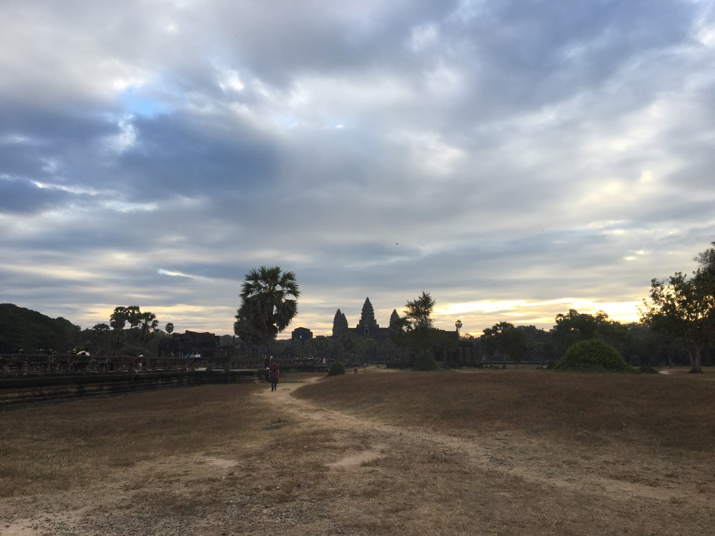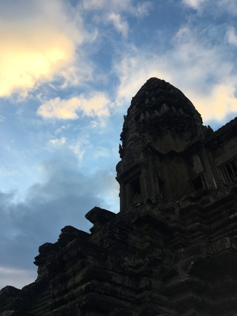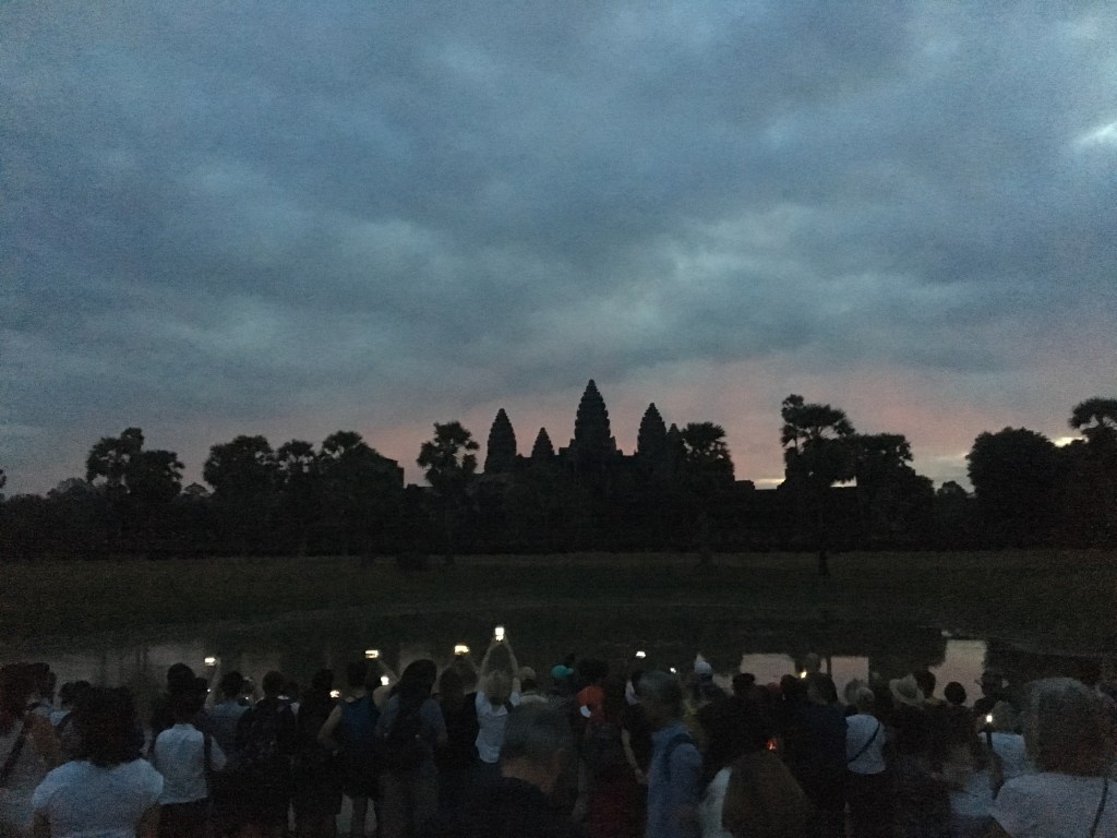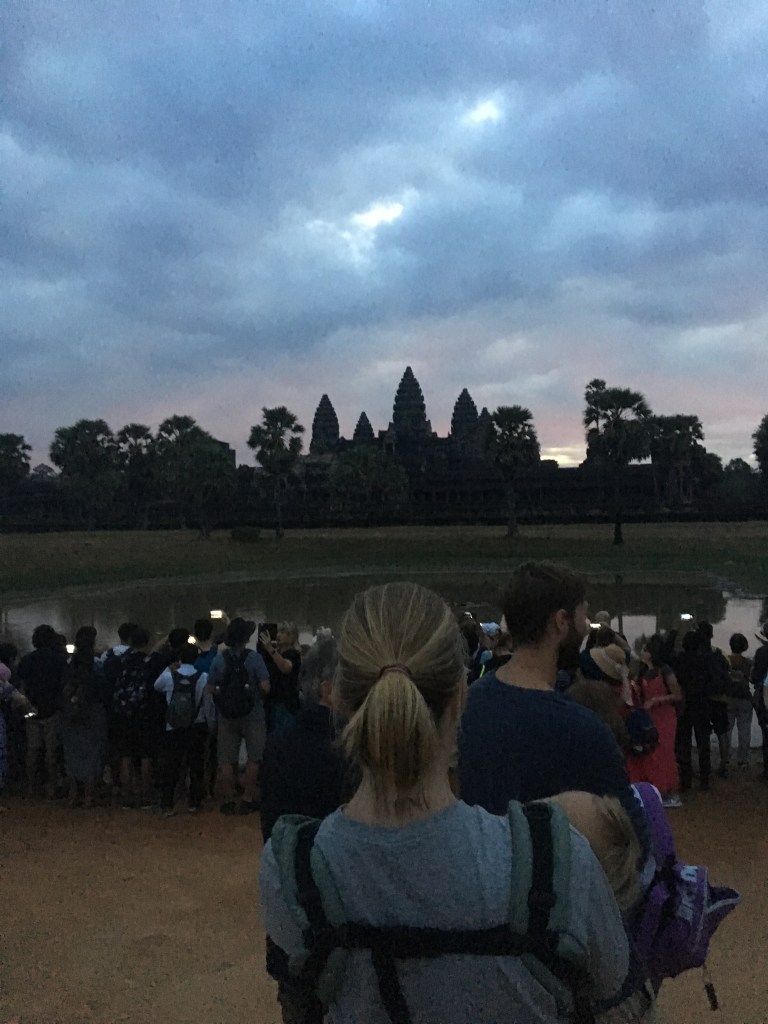 Hello dear readers! How are you? I hope you are having a nice weekend. Here in Scotland it’s raining, today we wanted to go to the farmers’ market and then to buy a camping tent in Clydebank, because we left ours in Italy, but we ended up doing nothing and being lazy: with this weather I enjoy staying in. But let’s travel back in time and go to a beautiful sunrise in Cambodia, in a much warmer climate. It was January we were visiting the Angkor Wat. On our third day in Siem Reap we woke up at 4.45am, we met our tuk-tuk in front of the hotel and we headed towards the temples. It was surreal to be on a tuk-tuk in the middle of the night with so many buses and other tuk-tuks passing beside you, everybody going to the same place in darkness. I very enjoyed it. Once you arrive in Angkor Wat it’s all about choosing the right spot, really, and once you find a good one don’t move! Also, try to be on a little hill so that when people arrive they don’t ruin your view. Unfortunately at sunrise it’s quite crowded, too, but at least it’s cooler and it’s so beautiful and unique, a once in a lifetime experience. In the end I get why it’s so crowded, we don’t have to be jealous. Many want to enjoy this moment (and hopefully not only to take a photo!).