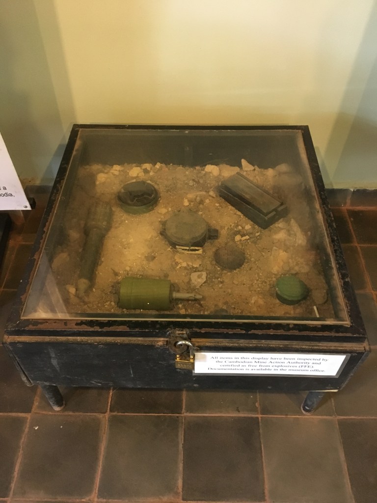 In the afternoon we went to Siem Reap’s town centre to have lunch and then we searched for a tuk-tuk that would bring us to the Landmine Museum, which was 47minutes (28kms) from the centre. We really enjoyed passing by the countryside and getting away from the touristy Pub Street to observe Cambodians in their daily lives. While on the road I was reading Lonely Planet’s pages about the Cambodian civil war and genocide to my boyfriend, to learn some history because I obviously knew what had happened but not in detail. It was very, very sad and touching and it prepared us to visit the museum. The Landmine Museum was opened in 1997 by Aki Ra, a former child-soldier of Pol Pot’s army whose parents were killed by the Khmer Rouge. This was the most shocking thing for me, I didn’t expect the founder of the museum to be a former Khmer Rouge fighter who planted thousands of mines during the war. While we were visiting Aki Ra was there, too, talking to other visitors. Along with the museum, he has opened with his wife (who sadly passed) a facility for children and teenagers who lost their parents, were abandoned or were hurt by landmines. I can only imagine how much guilt he must live with everyday. But now with his charity he is raising funds for Cambodia’s demining, he is helping children under his care and people who lost limbs because of the mines. Since 1992 he has personally removed 50.000 landmines. You can donate on the museum’s website, if you wish: http://www.cambodialandminemuseum.org/our-history/ . There is also a documentary film about him and I’d really like to watch it, it’s called “A Perfect Soldier”.