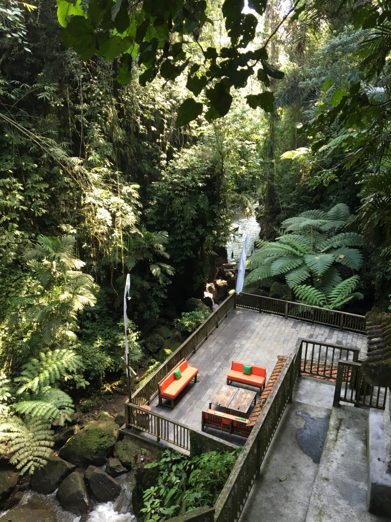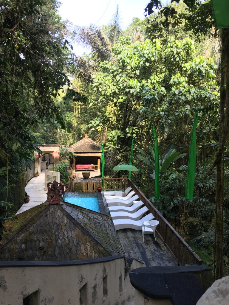 For our stay we chose Alam Ubud Culture Villas and Residence (https://alamubudvilla.com) and would go back right away. We arrived almost at midnight and they brought us to our Jungle Villa with a golf cart because there’s quite a distance between villas (remember this if you’ve got problems walking, we had a lot of stairs and steep parts to do). I love the fact that there’s a lot of space between the bungalows because of the privacy, as well. You can also book a villa with a private pool but we had one with terrace.