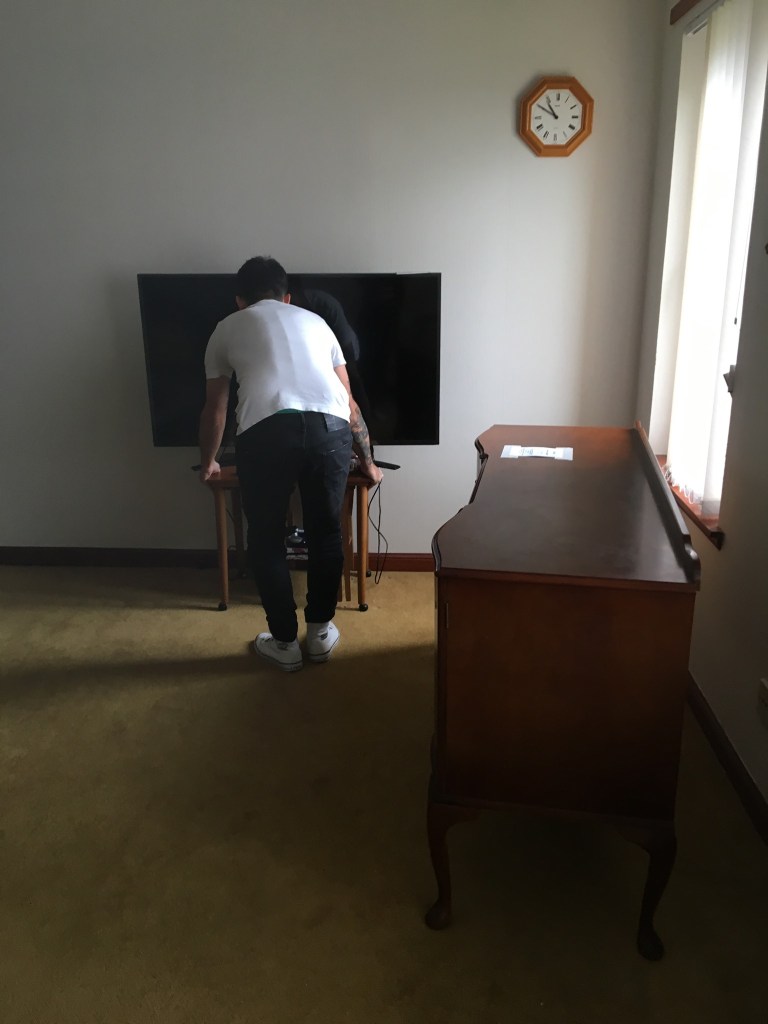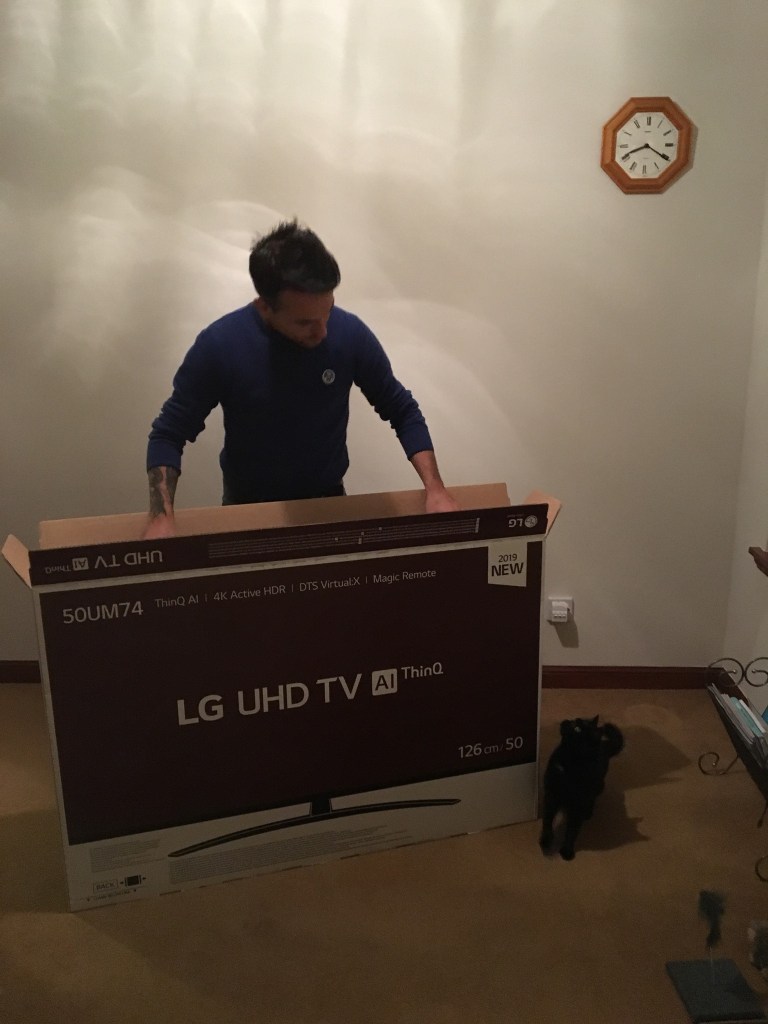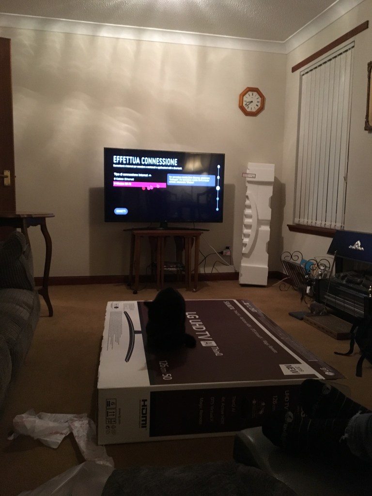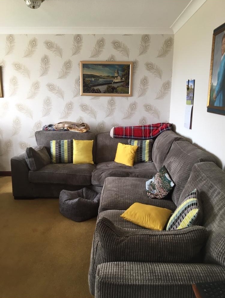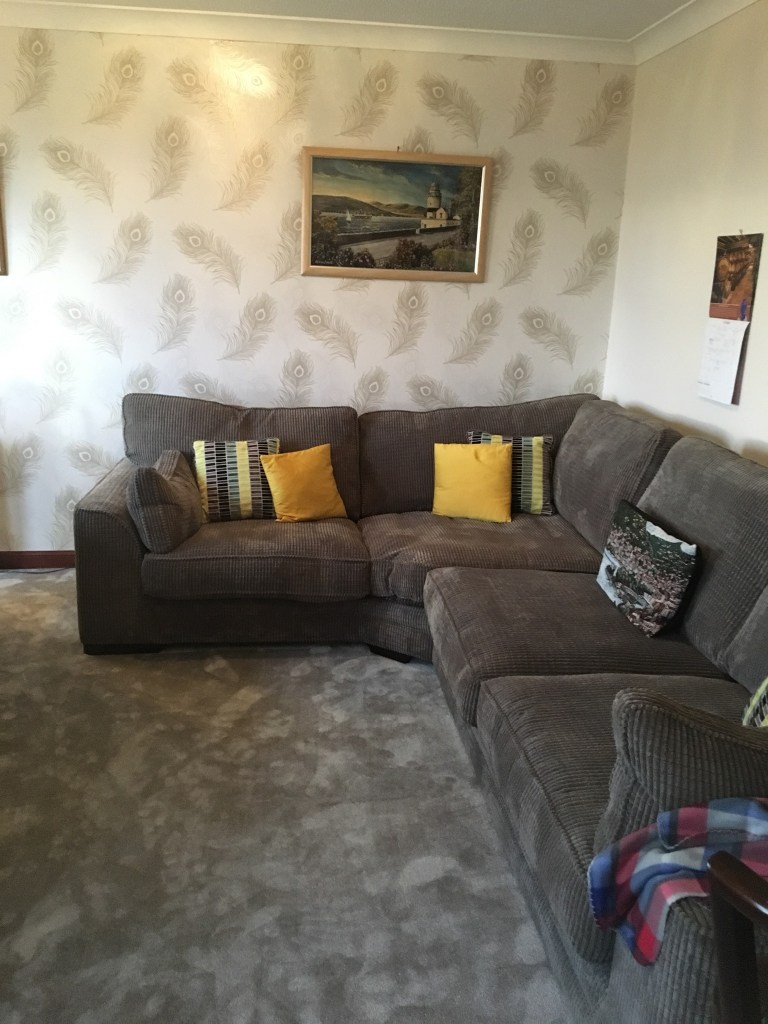 - the sitting room! There’s a new carpet, new windows (old ones were letting cold air and rain in…Scottish weather!), new TV and the old-fashioned display cabinet/TV unit has been replaced by a lovely second-hand piece of furniture that we found in a charity shop for just 70£.