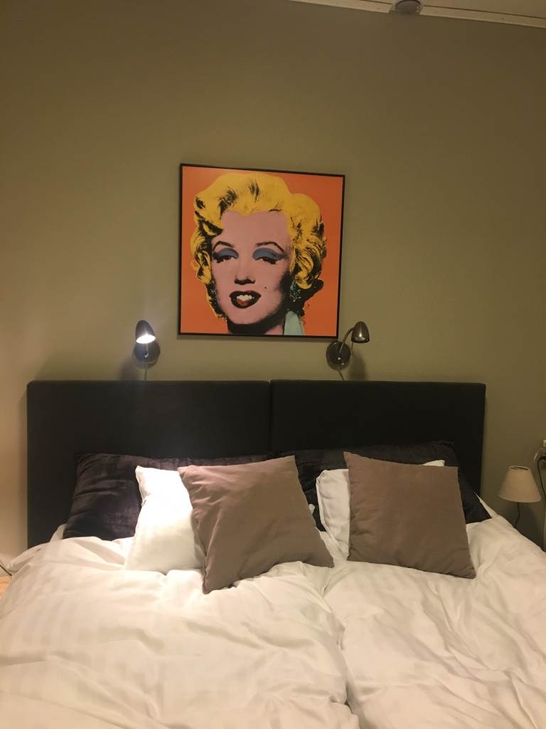 On our first night in Scandinavia we left the hotel to have dinner but the restaurants were about to close (something to keep in mind, they close early). The atmosphere was incredibly still and quiet, we were the only ones around and we felt that we were in another world. As there was no trace of restaurants, we looked for a small supermarket, where we bought bread, cheese and a bit of comforting junk food and we went back to our super tiny hotel room to wrap up in the warm covers. We had dinner in bed while watching Love Actually on the satellite TV…in English! It was a dream come true.