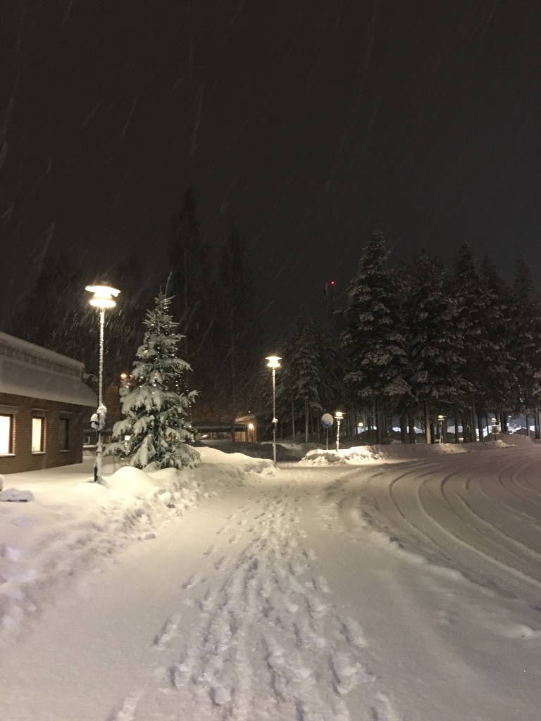 We arrived in Kemi at around three o’clock and checked into Hotel Palomestari (https://www.hotellipalomestari.com), which was around 5 minutes from Kemi Bus Station and Kemi train station (where trains to Rovaniemi leave). Of course it took more because dragging our heavy trolleys in the deep snow! Our room had two single beds and was huge, with a view of the main street of the town.