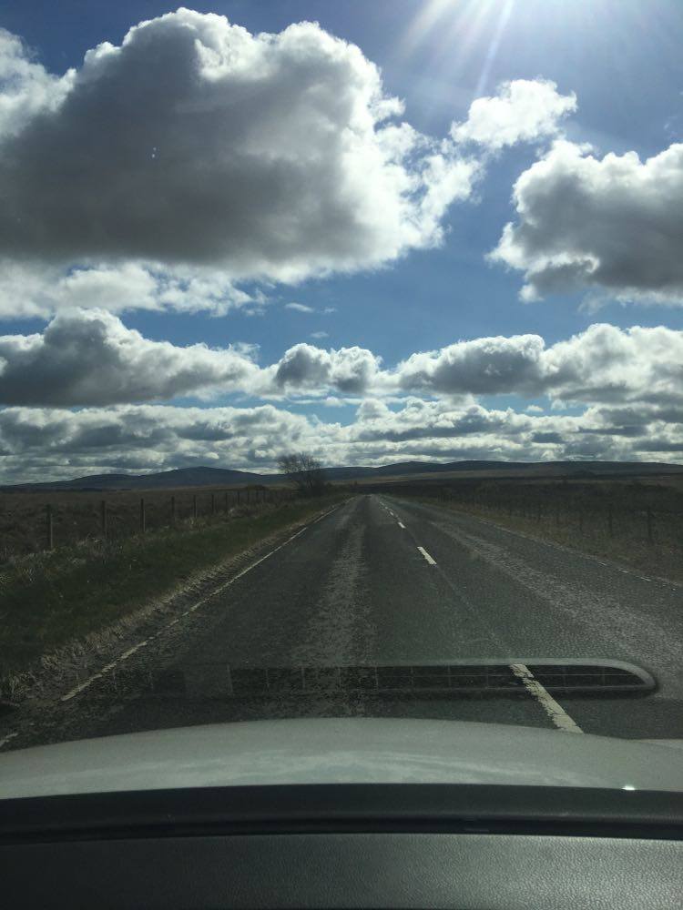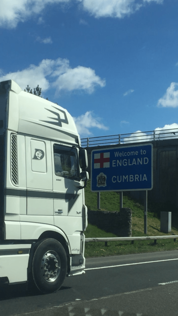 Il viaggio in macchina dalla Scozia all’Inghilterra è stato molto bello ed è passato in fretta, infatti c’era un sole splendente e niente traffico (pochissime macchine oltre a noi, solo van e camion dei key workers) .
